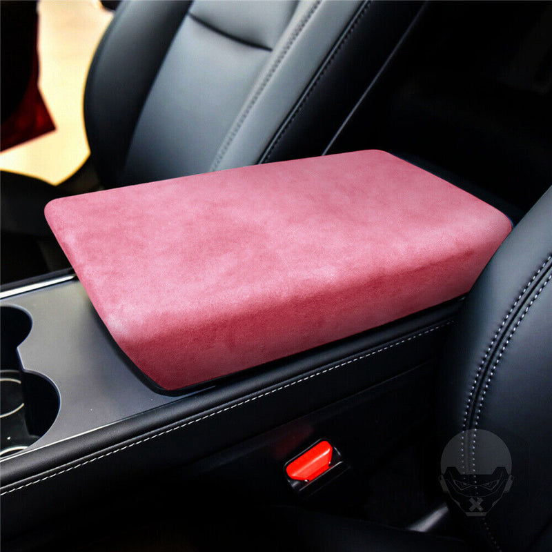 Pink Suede Center Console Armrest Box Cover Trim Lid for Tesla Model-3 2017-2022
