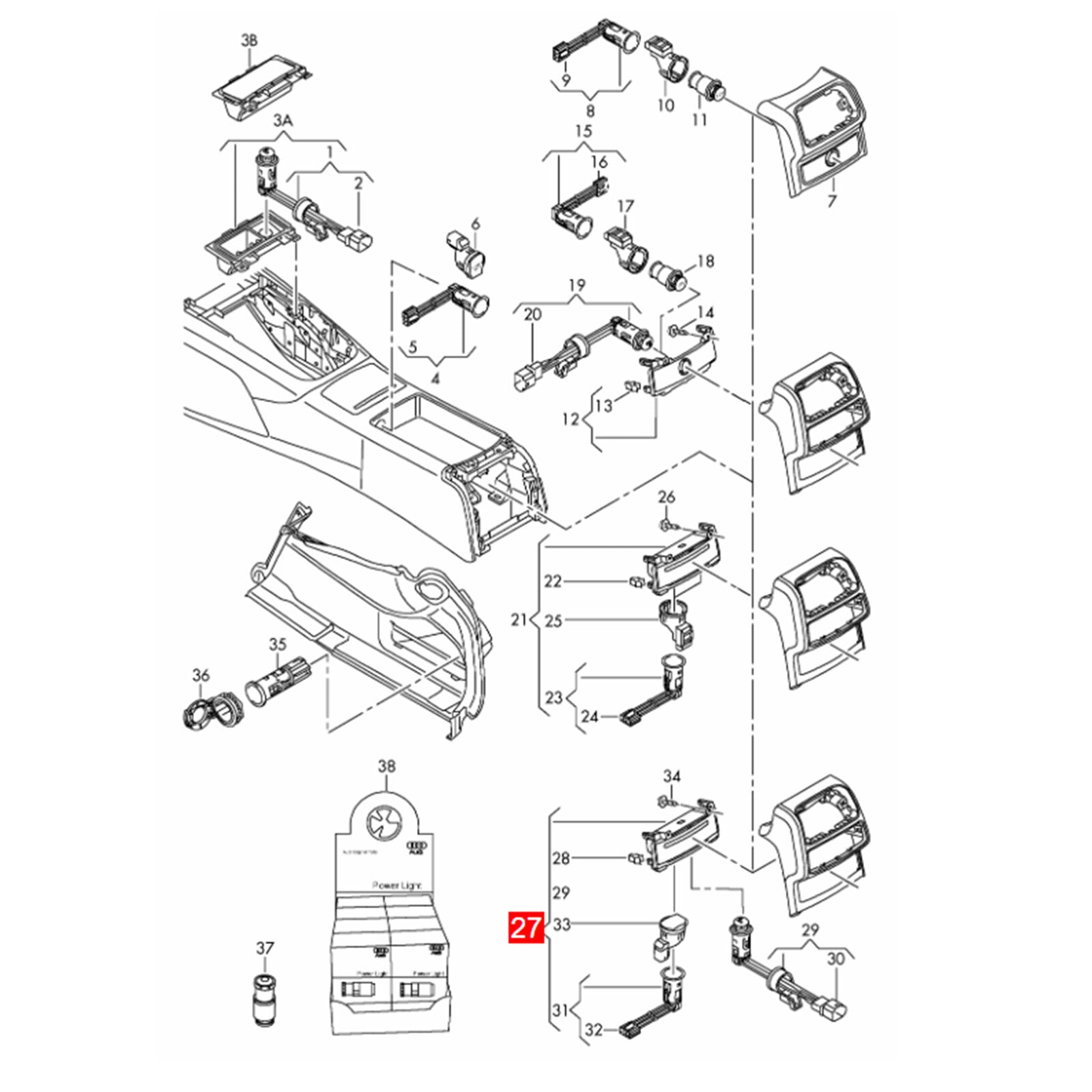 WXZOS Rear Center Console Cigarette Lighter Socket Assy for Audi A6 Allroad C7 2013-18